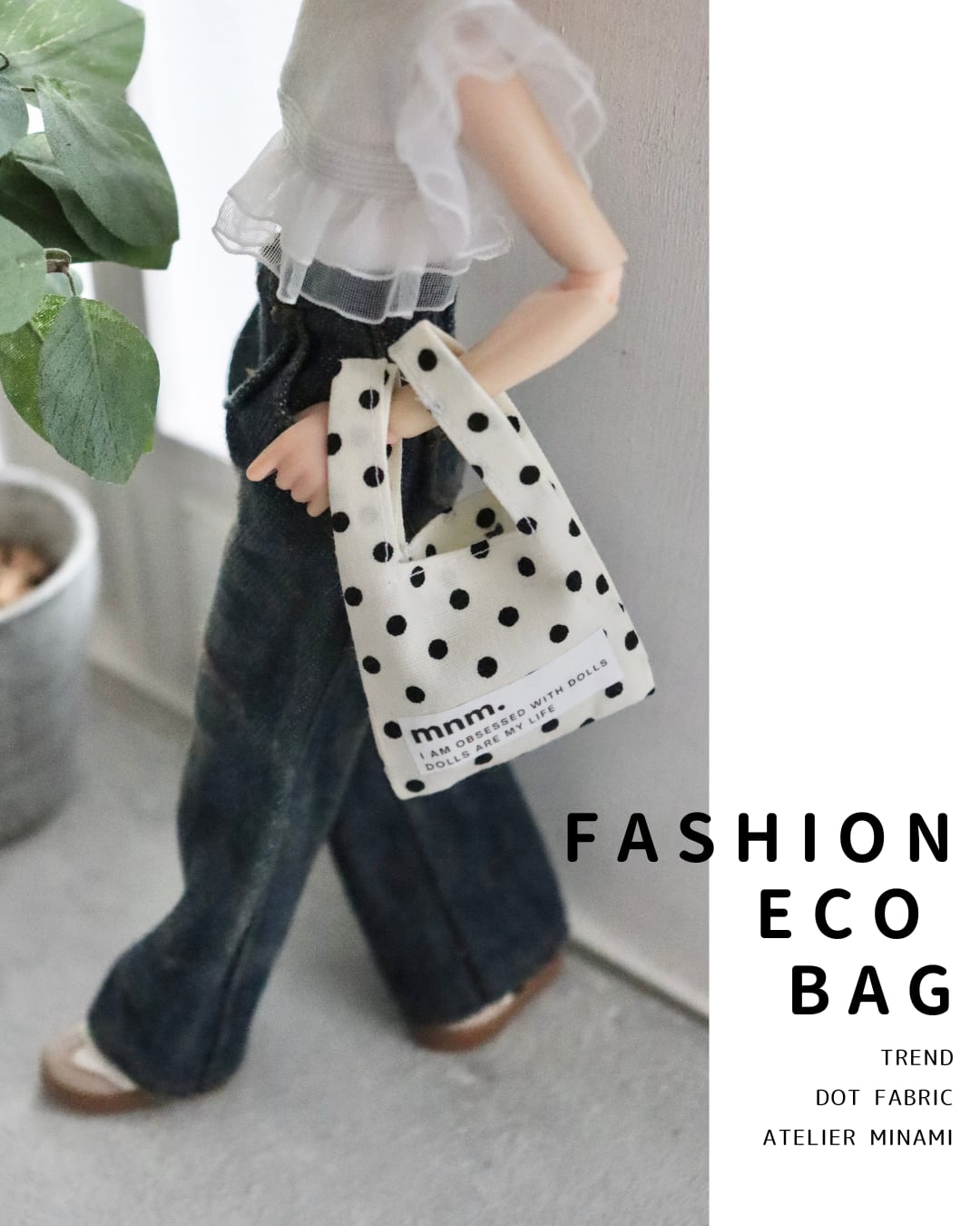 トレンドのドットファブリックを使用したエコバッグです!ファッションのアクセントとしても最適で、日常使いにもぴったりなアイテム。シンプルなお出かけから、カジュアルなスタイルまで、幅広くコーディネートを楽しむことができます。